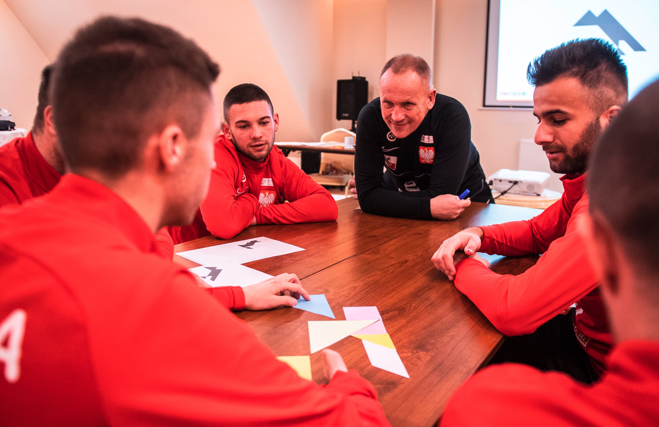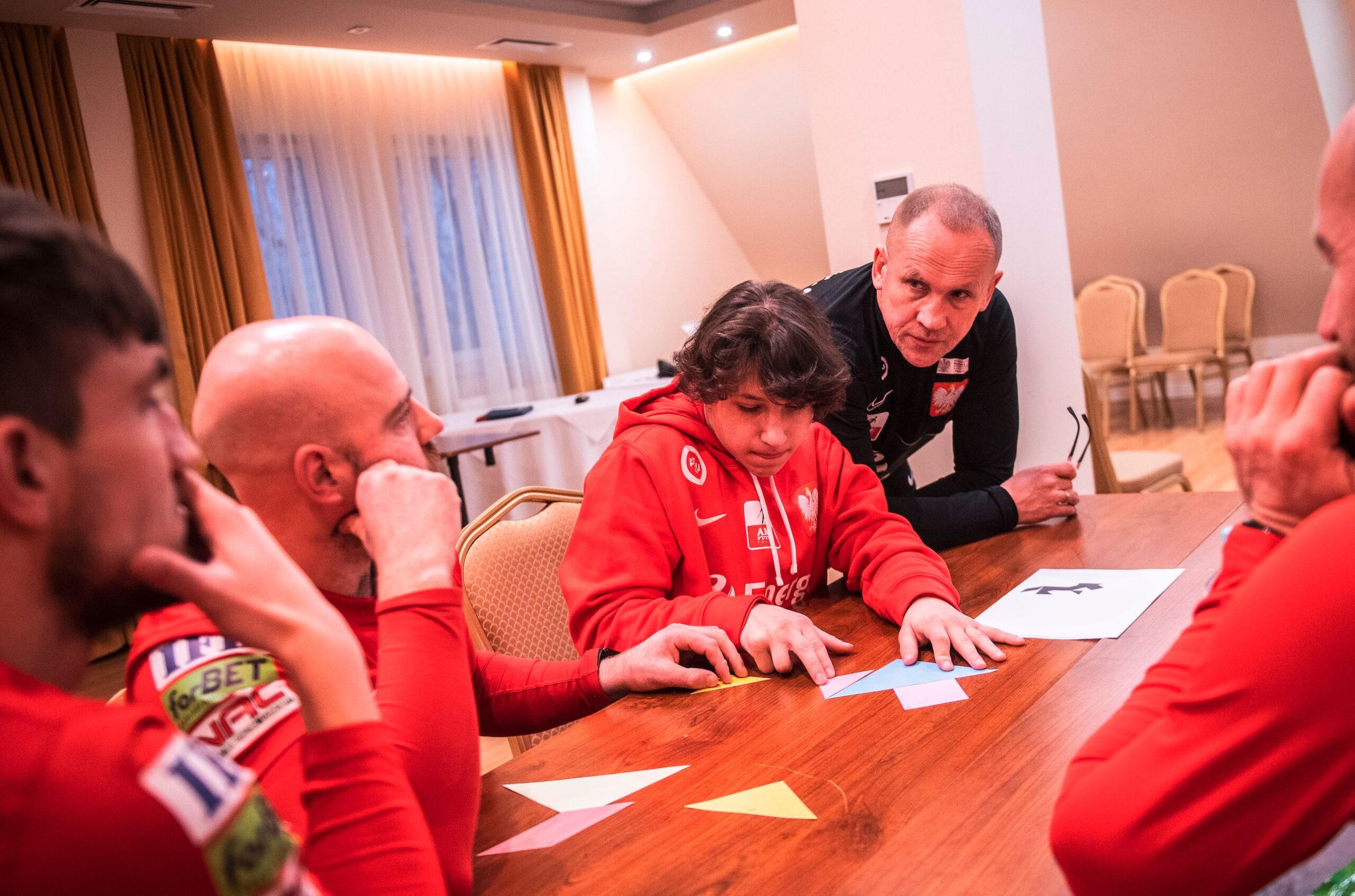 Poniżej krótkie fragmenty z treningów MENTALNYCH reprezentacji Polski w Amp Futbolu.