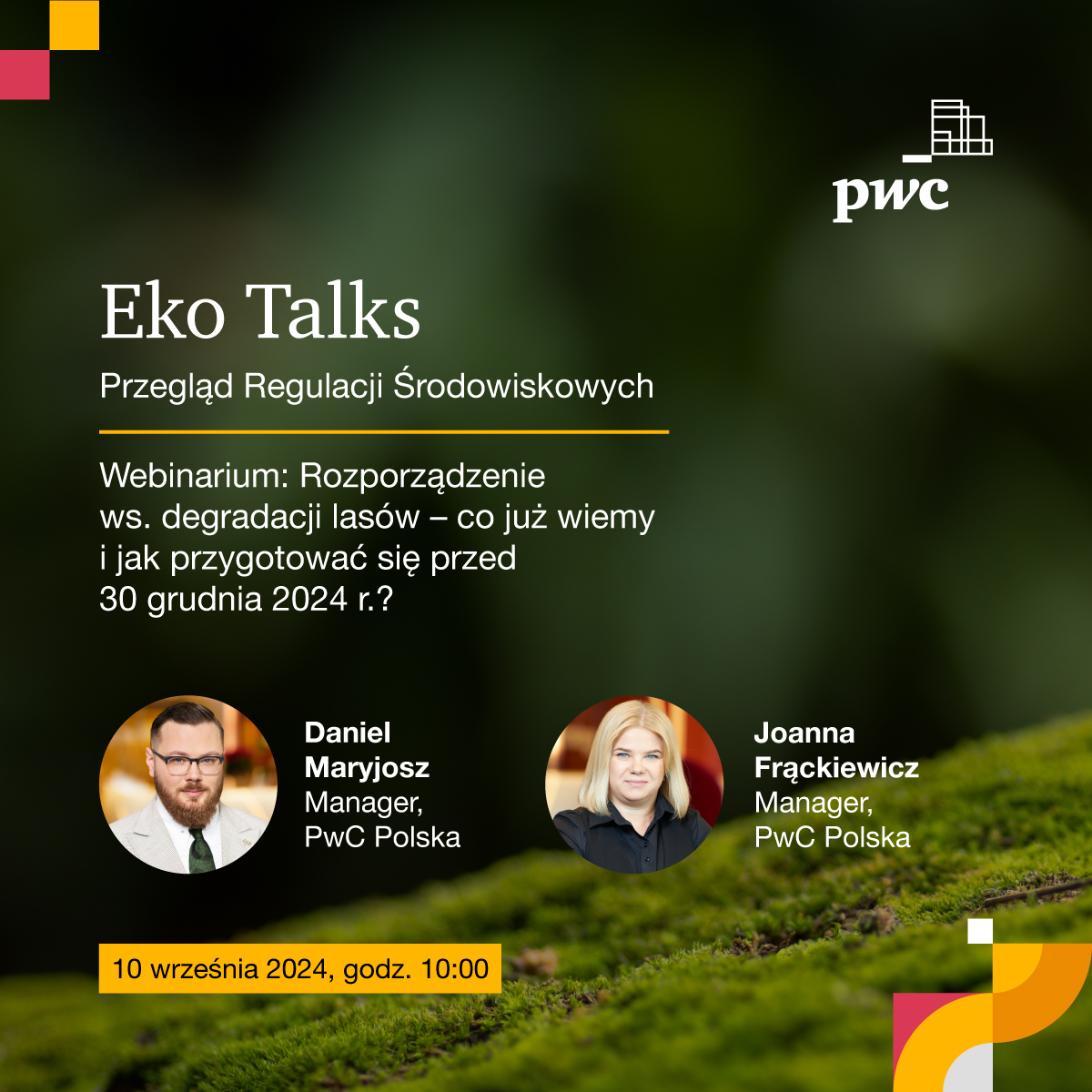 serdecznie zapraszamy do udziału w naszym webinarium w dniu 10.09.2024 r. (wtorek) w godzinach 10.00 – 11.00, pt. Rozporządzeniu w sprawie degradacji lasów Co już wiemy i jak przygotować się przed 30 grudnia 2024 r.?