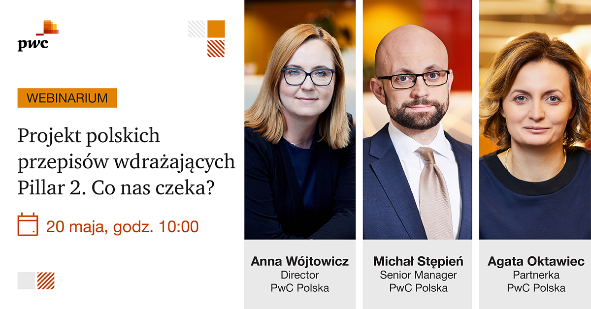 Serdecznie zapraszamy do udziału w naszym webinarium w dniu 20.05.2024 r. (poniedziałek) w godzinach 10.00 – 11.00, które będzie poświęcone projektowi polskich przepisów wdrażających globalny podatek minimalny znany również jako Pillar 2.