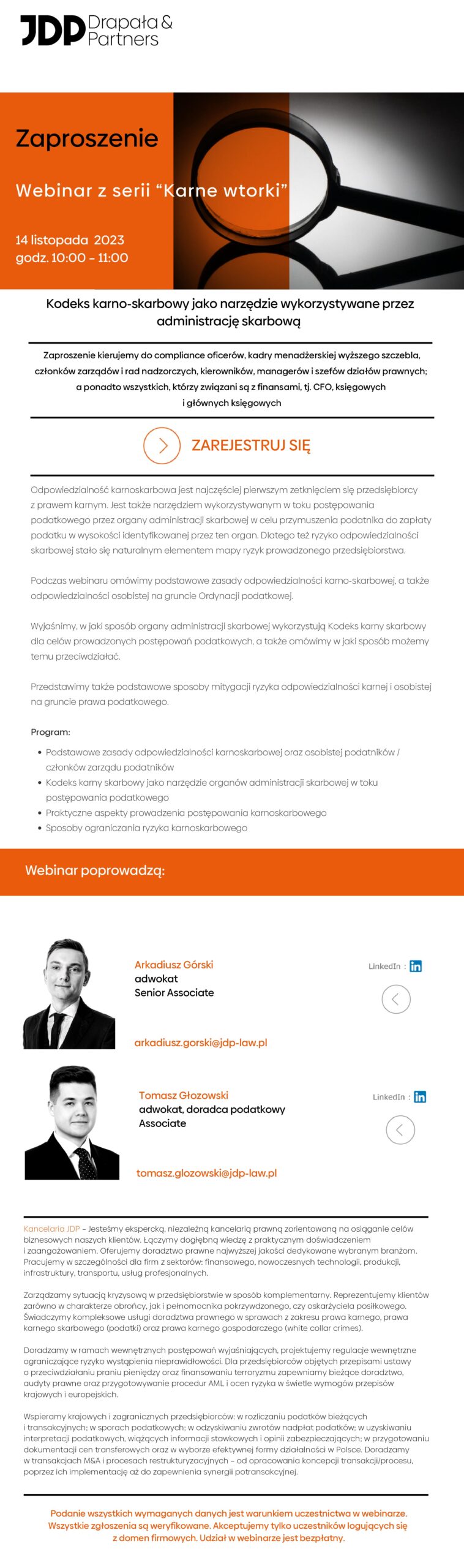 Liczba miejsc ograniczona. Udział w webinarium jest bezpłatny.