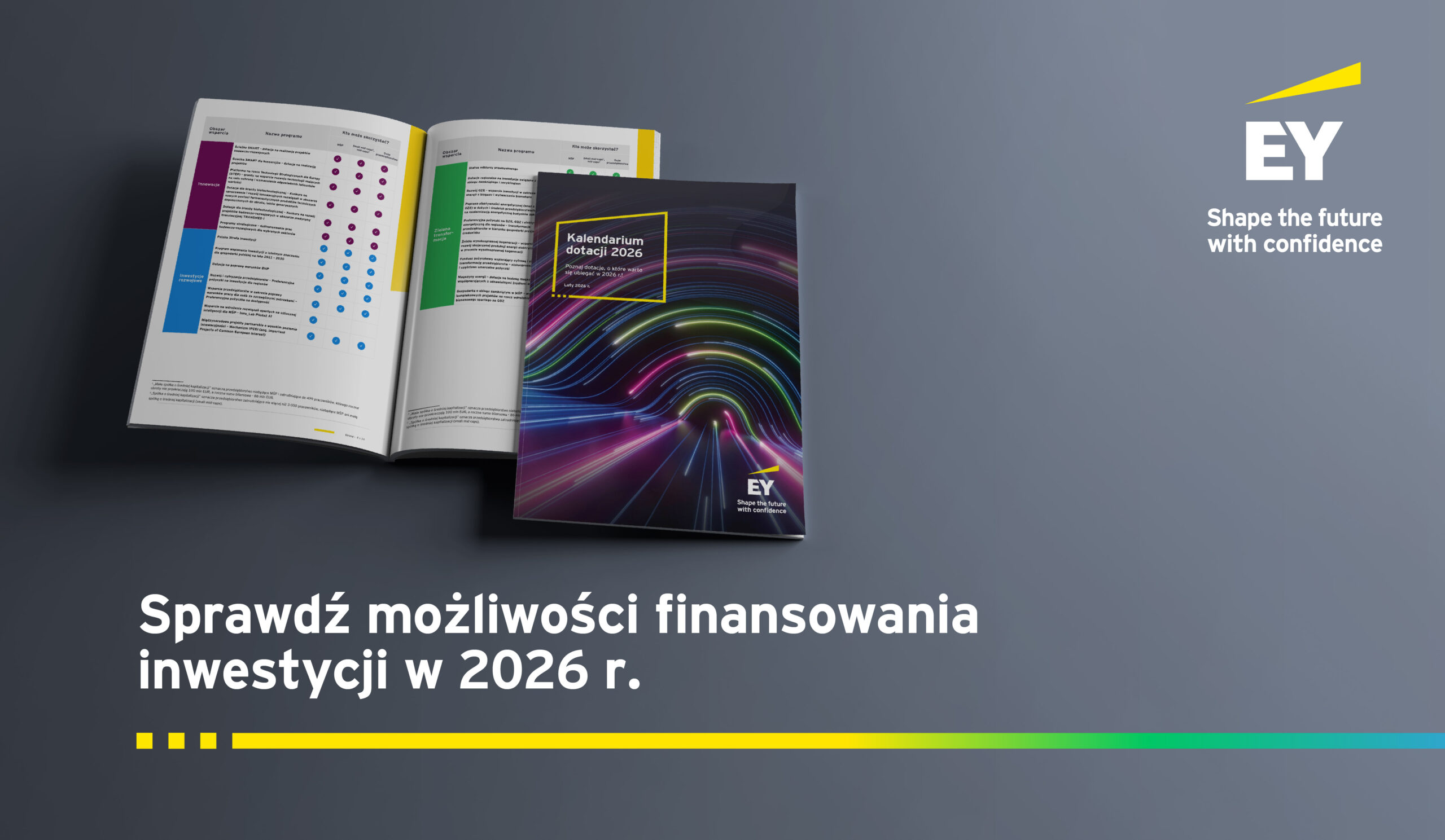 Aby zapewnić Państwu pełen dostęp do dostępnych możliwości dofinansowania, zespół specjalistów EY opracował kompleksowe Kalendarium Dotacji 2026, które zawiera najważniejsze planowane nabory oraz obszary wsparcia. W broszurze znajdą Państwo kluczowe informacje o dotacjach, usystematyzowane według ich przeznaczenia.