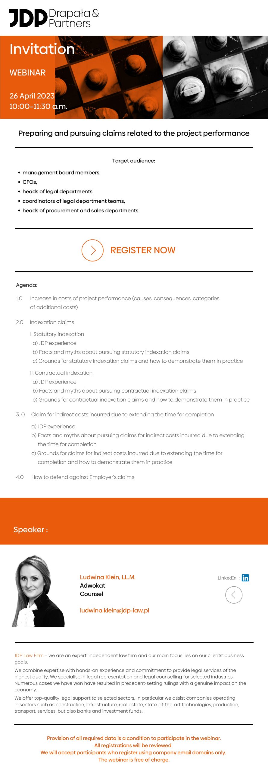 Zaproszenie na webinar JDP | Preparing and pursuing claims related to the project performance