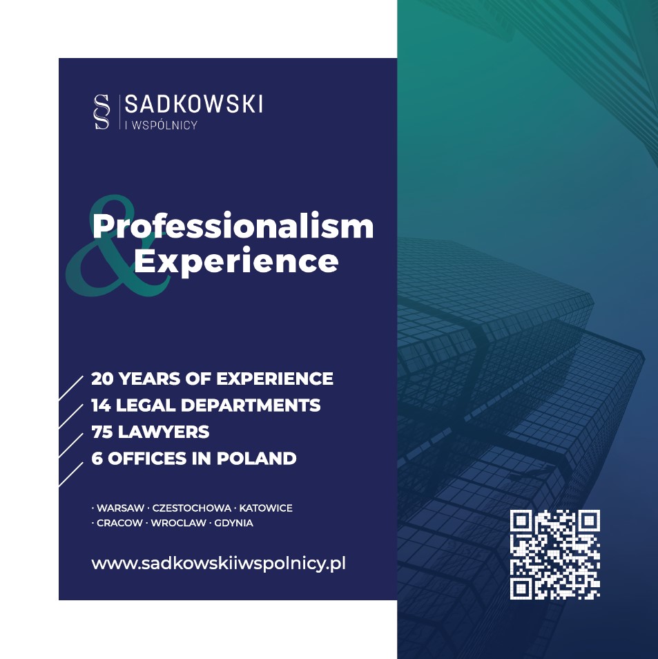 Sadkowski i Wspólnicy is a big law firm specialized in the provision of comprehensive legal services to Polish and foreign entities conducting business activity. Our team is more than willing to accept matters which are novel and call for a strategic approach. We have several years of experience relating to operation of businesses, not only in the area of law but also in management and economy. Our goal is to provide our Clients with optimal solutions, which assure their indispensable safety and allow them to achieve success.