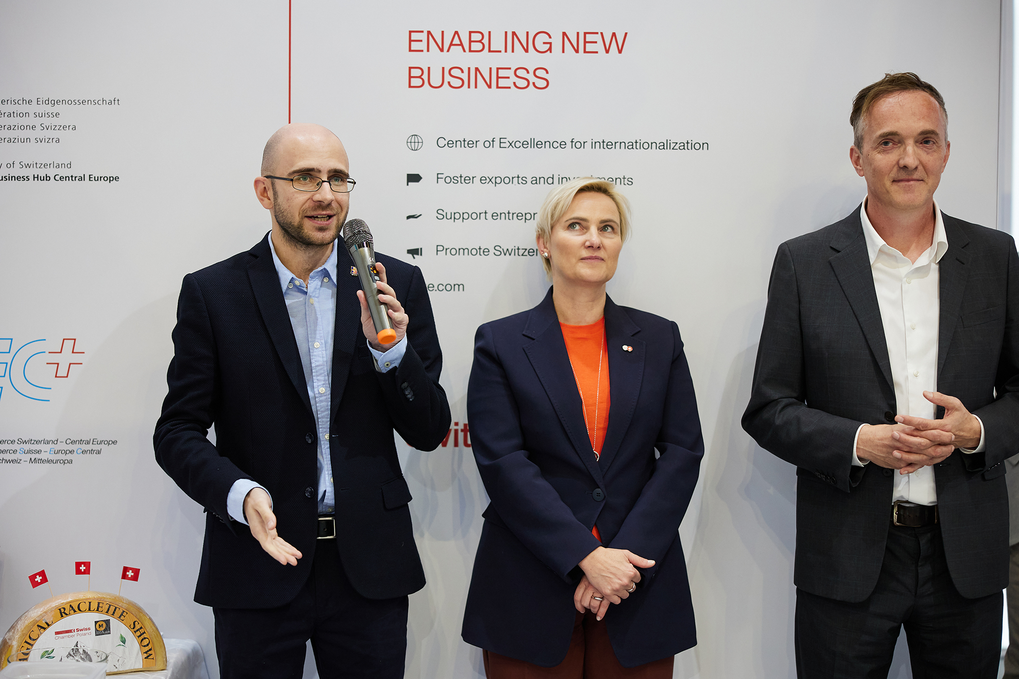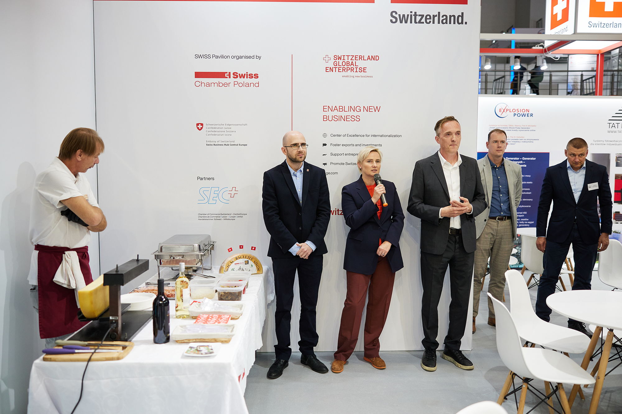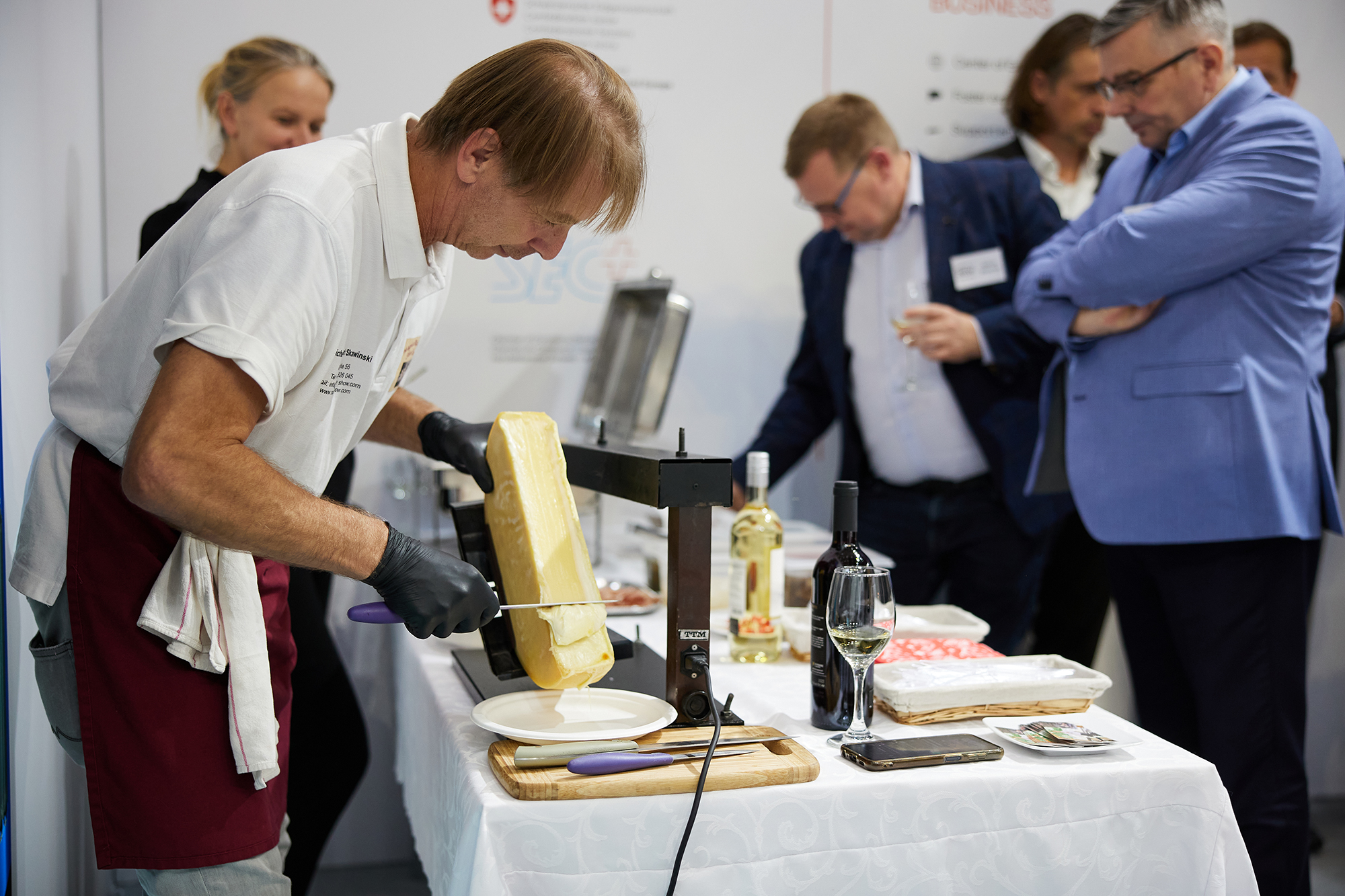 On the first day of the fair we organized Swiss-style apero for clients and business partners of Pavilion’s exhibitors during which Michel Prestinari-Skawiński served raclette. We also hosted the President of ZIAD Bielsko-Biała S.A., Dariusz Mrzygłód, and the Advisor to the Management Board of ZIAD Bielsko-Biała S.A., Ryszard Migdalski in our Pavilion.