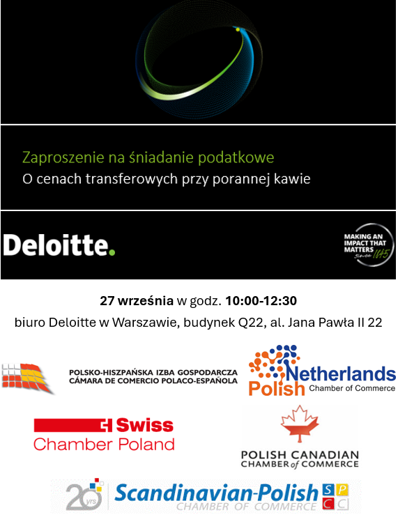 we cordially invite you to the meeting About transfer pricing over a morning coffee, which will take place on September 27, 10:00 – 12:30 at the Deloitte Office in Warsaw (Q22 building, al. Jana Pawła II 22).