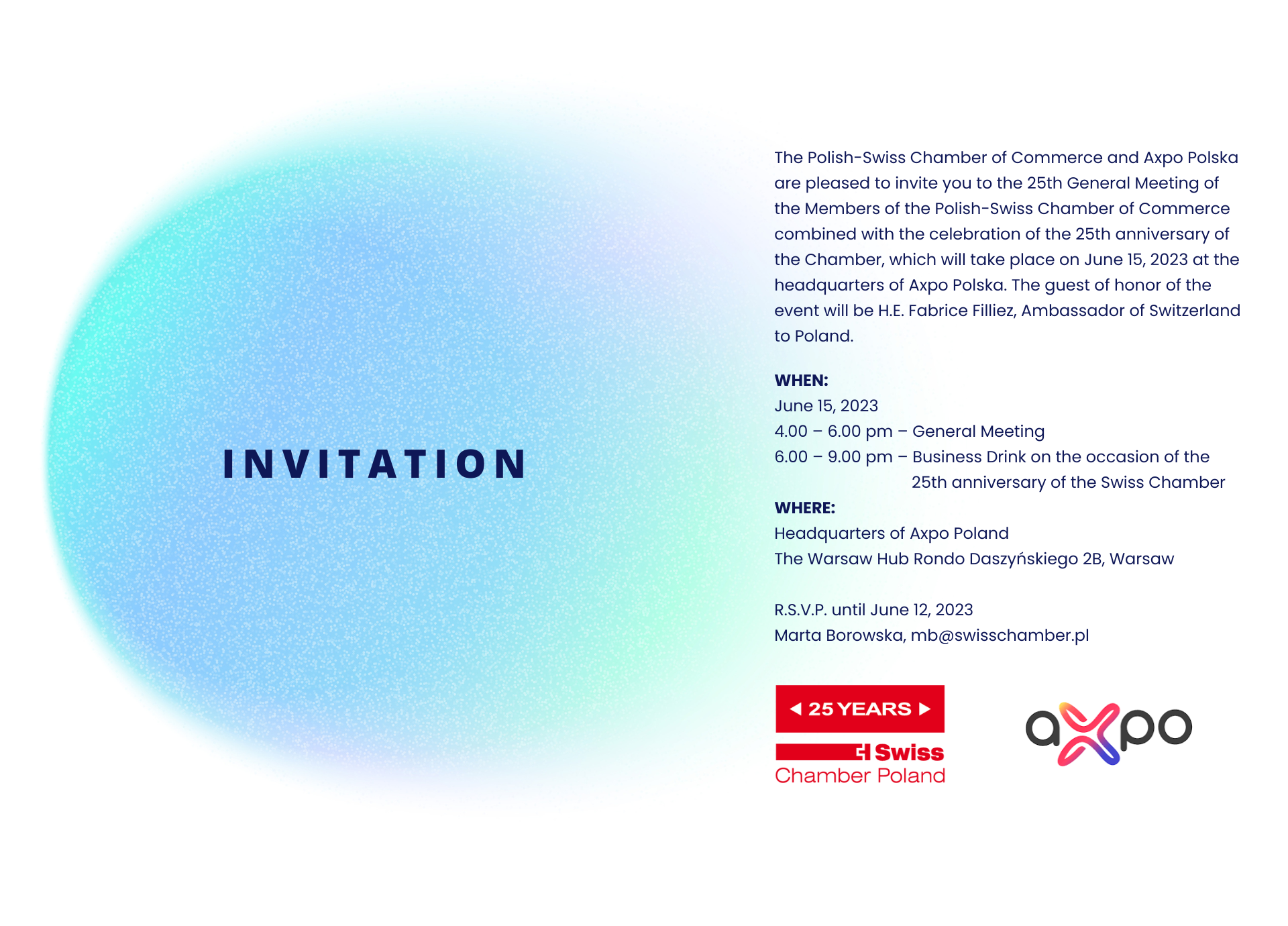 XXV General Meeting & Business Drink on the occasion of the 25th Anniversary of the Chamber Date: 15.06.2023, 16:00 - 21:00 See event report Location:
