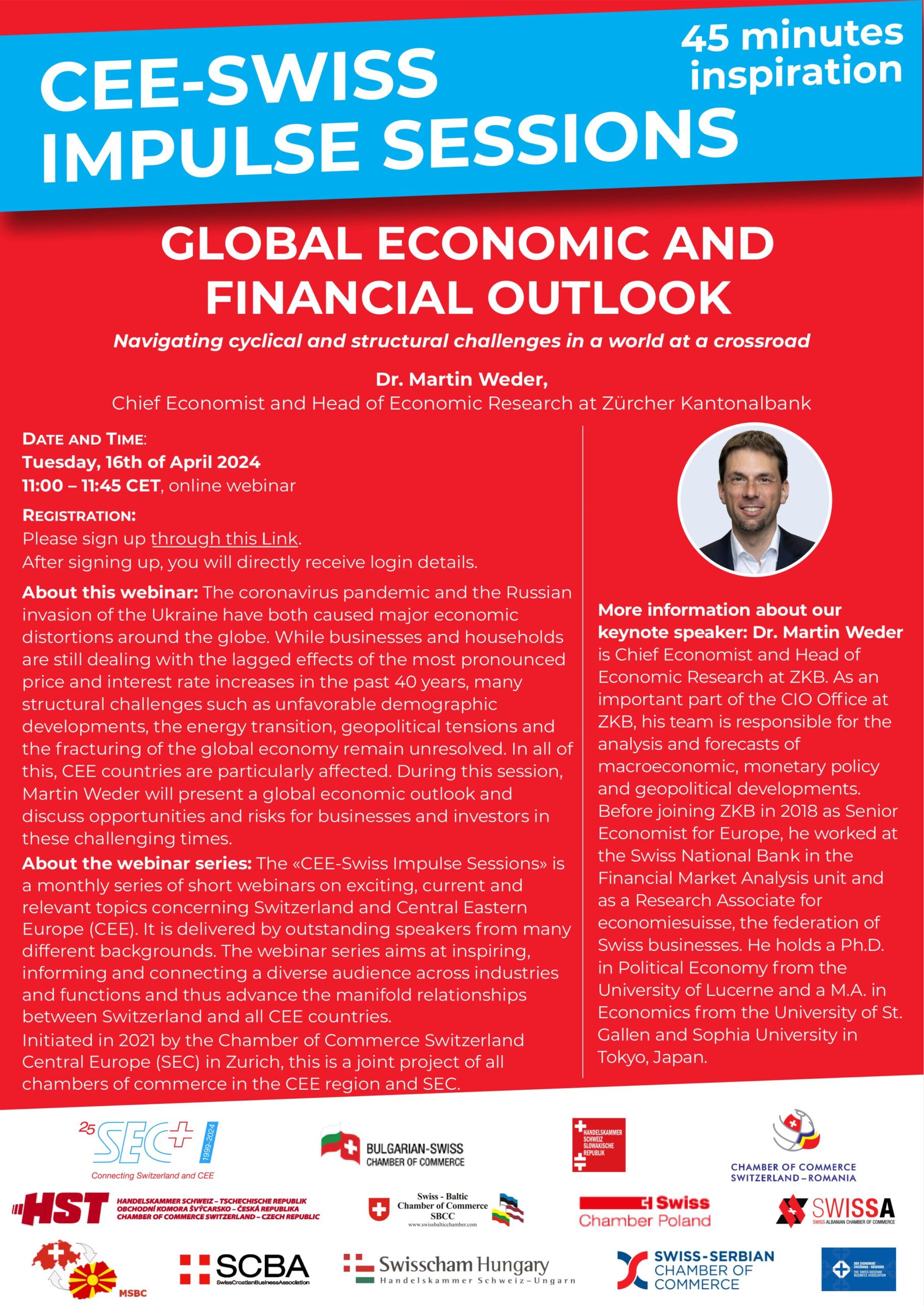 CEE-Swiss Impulse Sessions: Global Economic and Financial Outlook Data: 16.04.2024, 11:00 - 11:45 Lokalizacja: Online