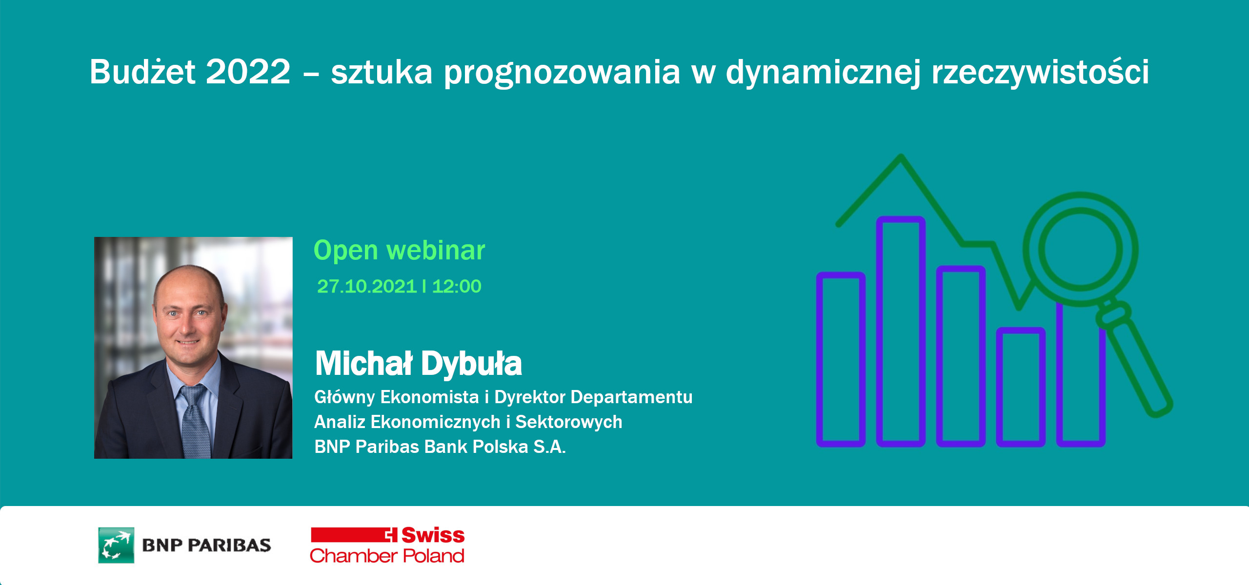 Serdecznie zapraszamy na open webinar “Budżet 2022 – sztuka prognozowania w dynamicznej rzeczywistości”, który odbędzie się 27.10.2021 o godz. 12:00! Partnerem merytorycznym wydarzenia będzie BNP Paribas Bank Polska, natomiast prelegentem będzie Michał Dybuła, Główny Ekonomista Banku oraz dyrektor Departamentu Analiz Ekonomicznych i Sektorowych.