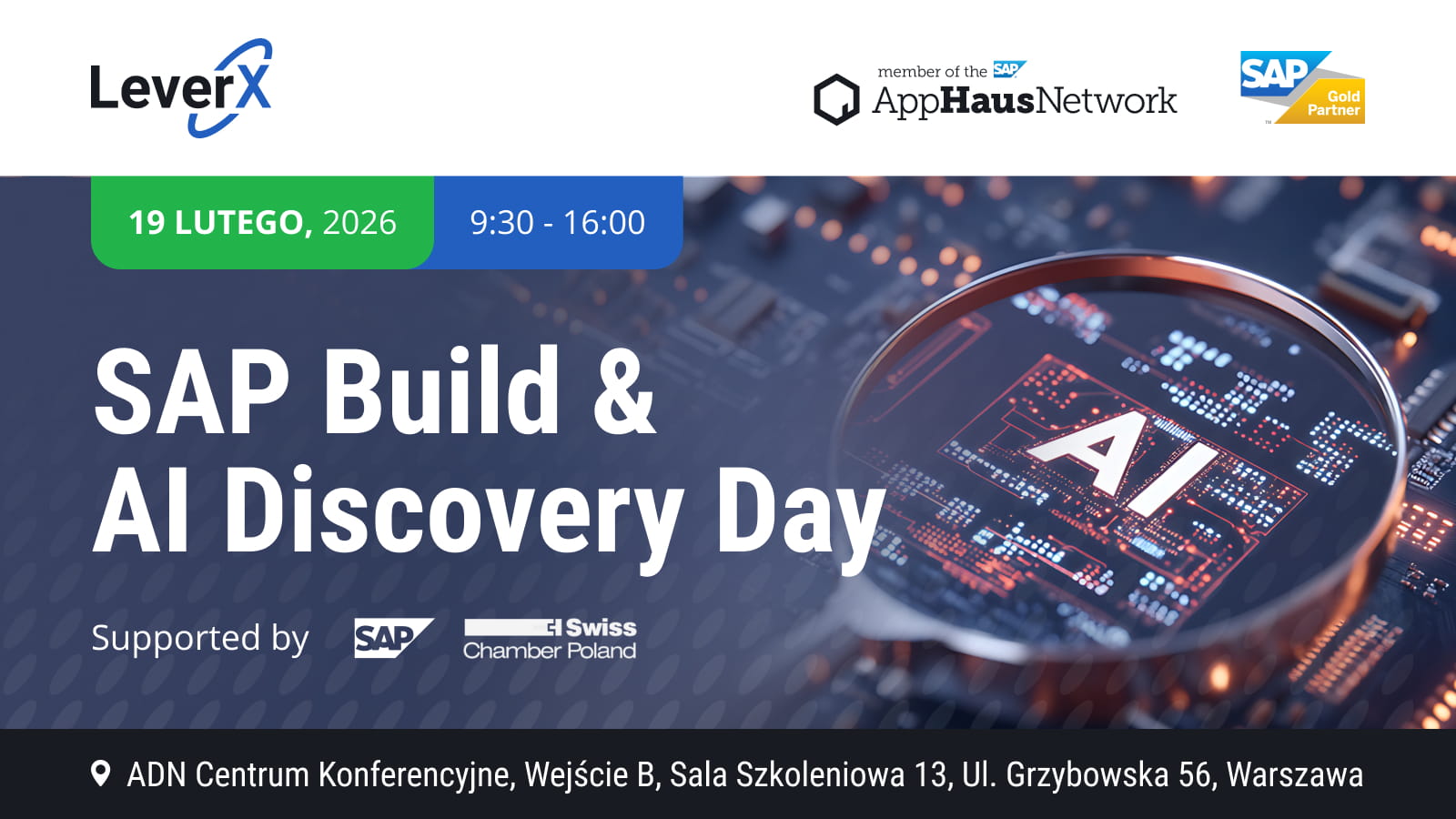 Wraz z naszą nową firmą członkowską LeverX Poland, która jako SAP Gold Partner od 20 lat realizuje projekty SAP na globalnych rynkach, zapraszamy serdecznie na bezpłatne warsztaty z SAP Build, SAP BTP, AI i Clean Core: